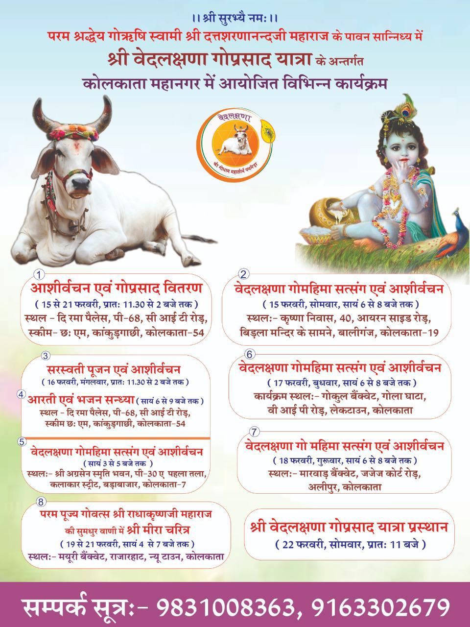 वेदलक्षणा गोप्रसादम यात्रा के कोलकाता प्रवास के अवसर पर आयोजित गोप्रसाद कार्यक्रमों में सभी गोभक्त सादर आमंत्रित हैं।
